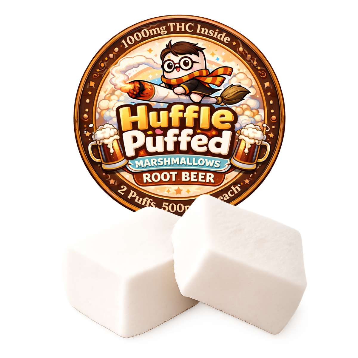 Huffle Puffed Root Beer Marshmallow Weed Edibles are built for cannabis users who want the strongest edibles in Canada with a classic, nostalgic flavour. Each bag delivers a massive 1000mg THC, placing these high THC edibles firmly in the extreme-strength category and making them suitable only for experienced consumers.